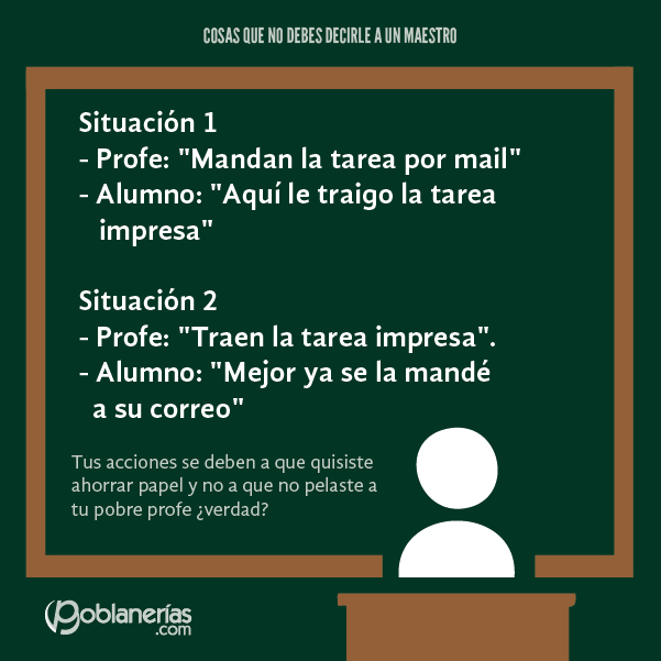 Compartimos una lista de frases, que pueden resultar graciosas, pero son muy ofensivas. Si algo debemos hacer por la educación es comenzar por el respeto y valorización de la tarea docente.