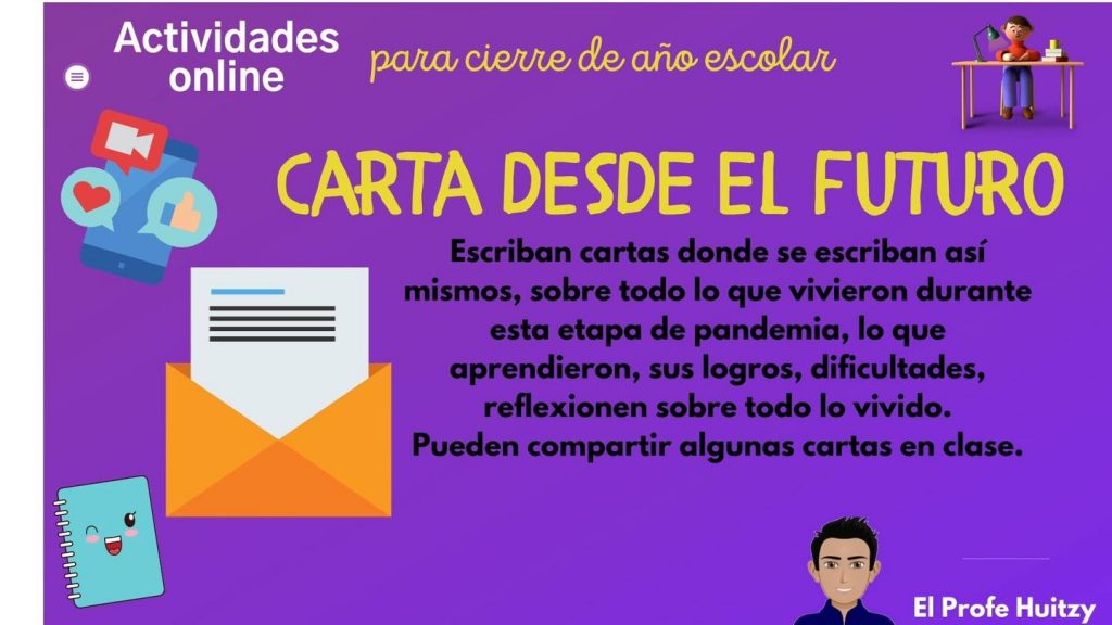 ¿Por qué no decir adiós con un poema o una carta anónima? Esta es una buena forma para que nuestros estudiantes den rienda suelta a su creatividad y escriban un poema o una carta anónima despidiéndose del curso y de sus compañeros.