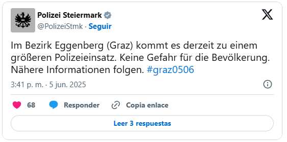 Poco después, la Policía ha informado de que la situación ya es «segura». «La escuela fue evacuada y todas las personas fueron llevadas a un punto de encuentro seguro», ha publicado la policía austriaca en su cuenta de ‘X’.