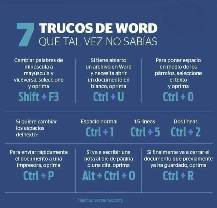 El portal AZ – Adsl Zone a publicado 50 trucos para que los usuarios aprendan secretos y combinaciones ocultas para mejorar y simplificar el uso de Office, estas son las más generales y podrán ayudarte a optimizar tu tiempo en la aplicación. A continuación compartimo la siguiente información únicamente con motivos educativos, esperamos que les sea de utilidad a la comunidad docente.