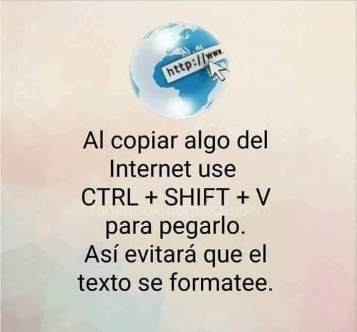Ctrl + V: Pega (texto de la copia)
