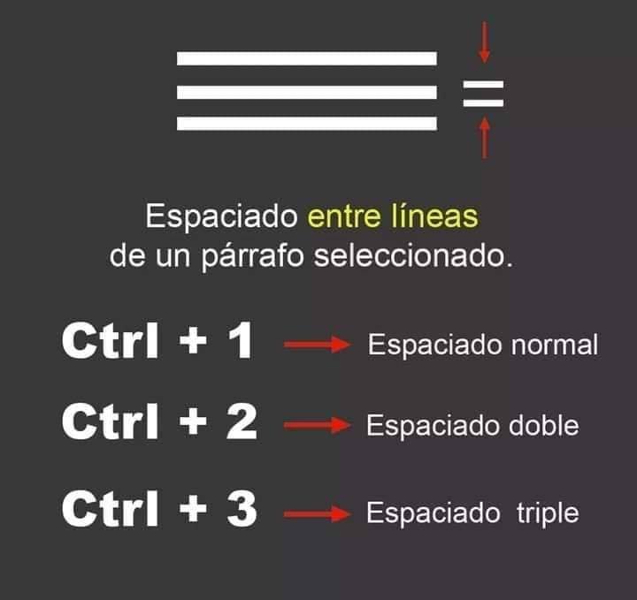 Ctrl + 2: Interlineado x2 (doble).