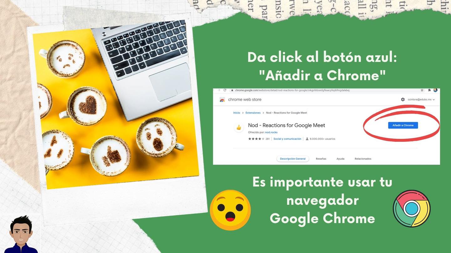 Nod es una extensión de Google Chrome para poder ver las reacciones a través de emoticones, de las personas que están participando de un Meet y se encuentran con el micrófono deshabilitado.