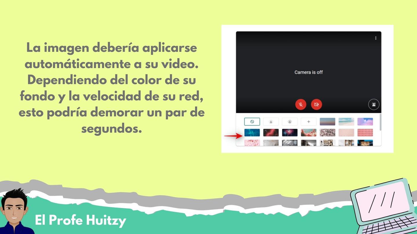 Importante: Los usuarios que se unan a la videollamada sin iniciar sesión en una cuenta de Google y los usuarios que necesiten pedir acceso para unirse, solo podrán cambiar el fondo una vez que hayan accedido a la videollamada. Los usuarios que se unan a una videollamada de G Suite para Centros Educativos no podrán seleccionar sus propias imágenes de fondo.