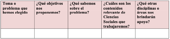 No obstante resulta central, según la complejidad de la propuesta, considerar el nivel escolar, los recursos humanos, materiales, institucionales, recursos de la comunidad local con los que se cuentan para abordar la investigación y la búsqueda de soluciones al tema o problema de la realidad elegido como objeto de conocimiento.