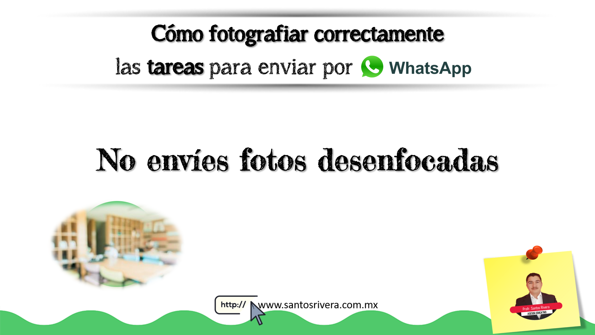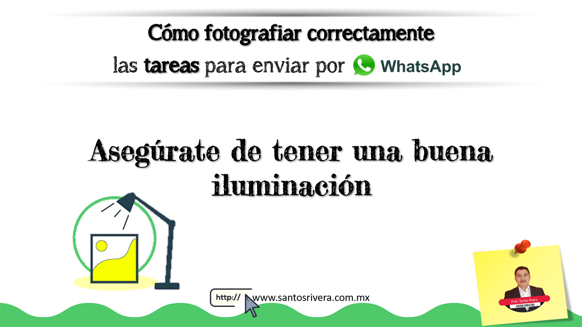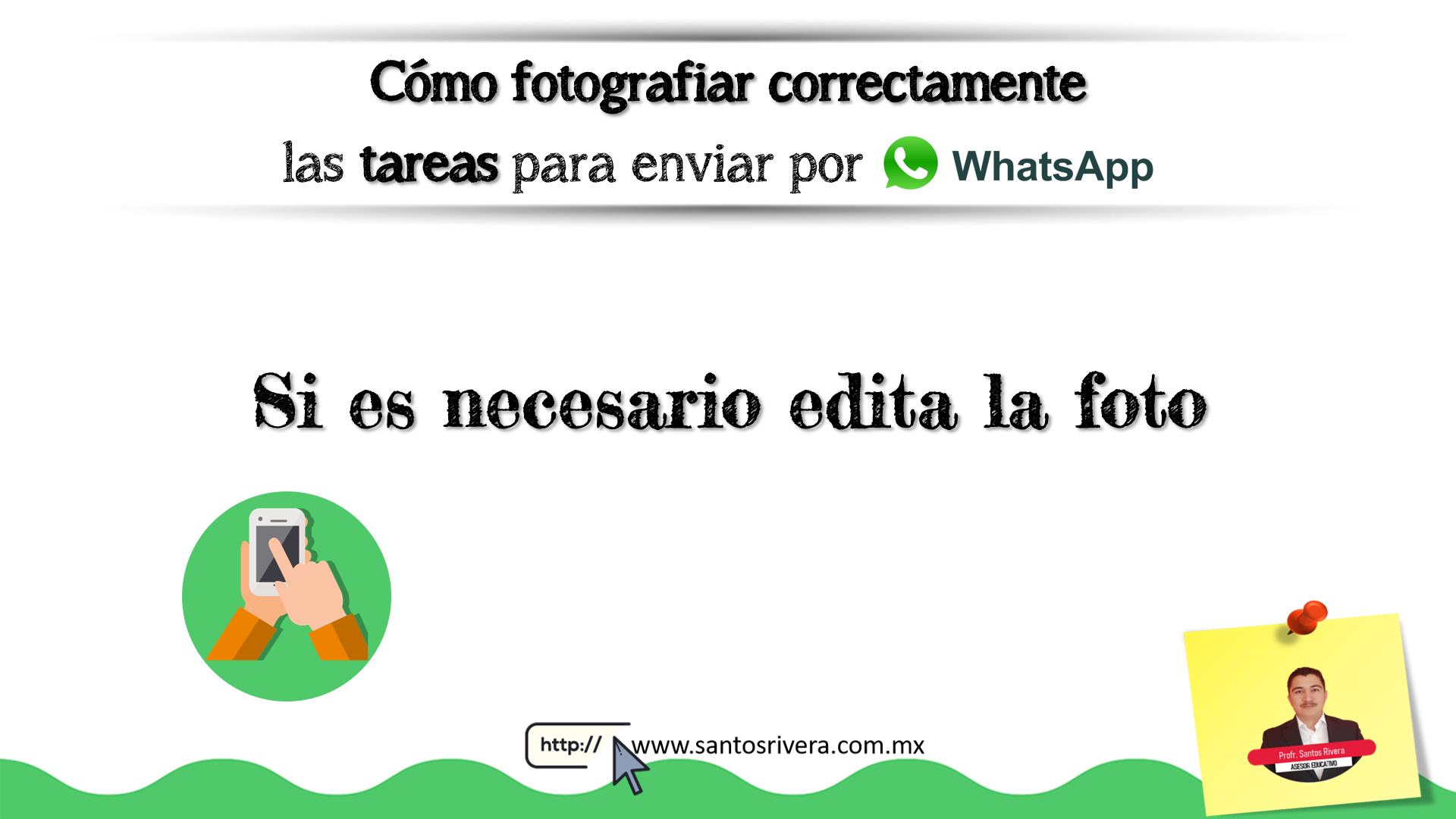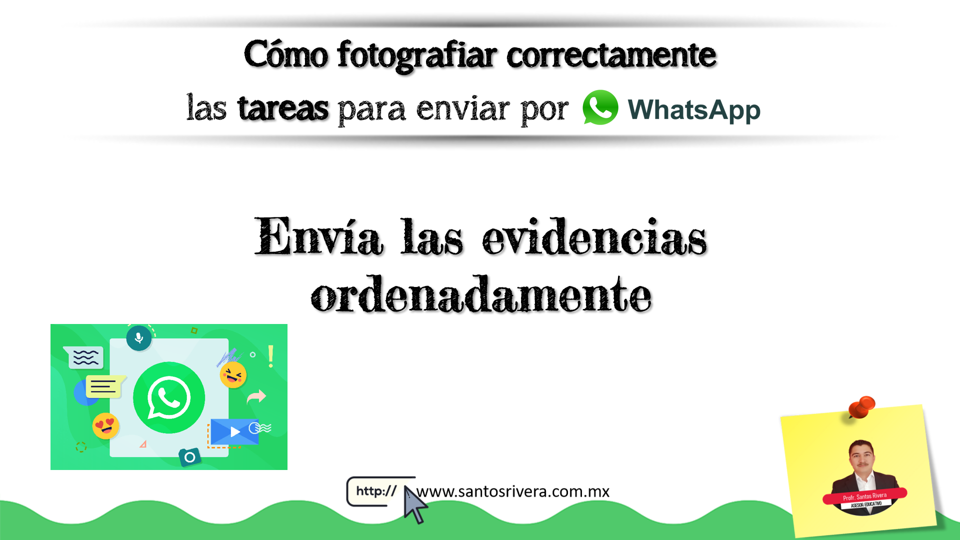 En esta infografía realizada por el profesor Santos Rivera da algunos tips para los docentes y estudiantes, ya que ahorrarán trabajo a la hora de enviar y recibir fotos de las tareas, ya sea como contenido educativo o a la hora de entregar actividades o evaluaciones vía WhatsApp.