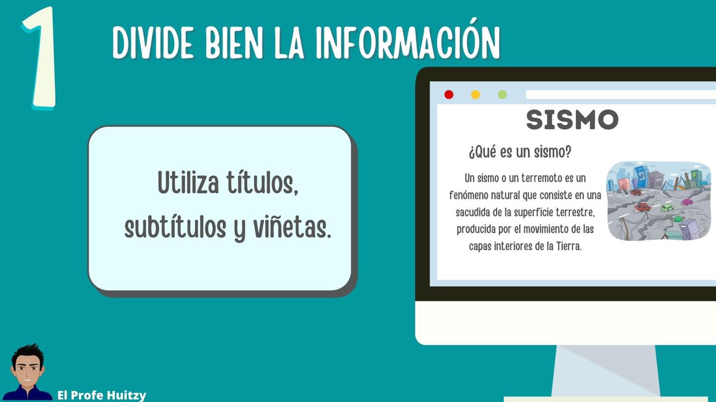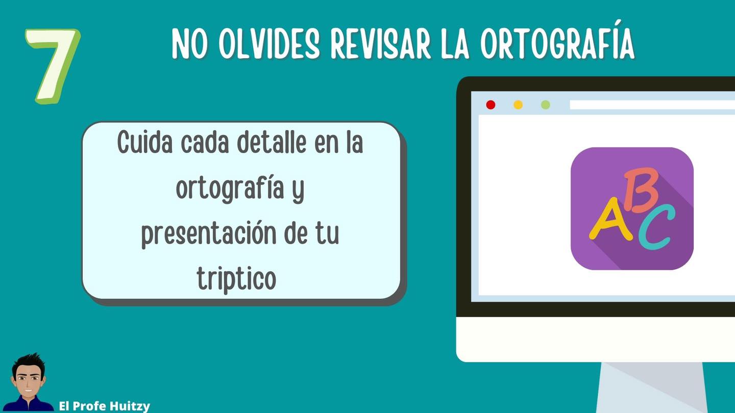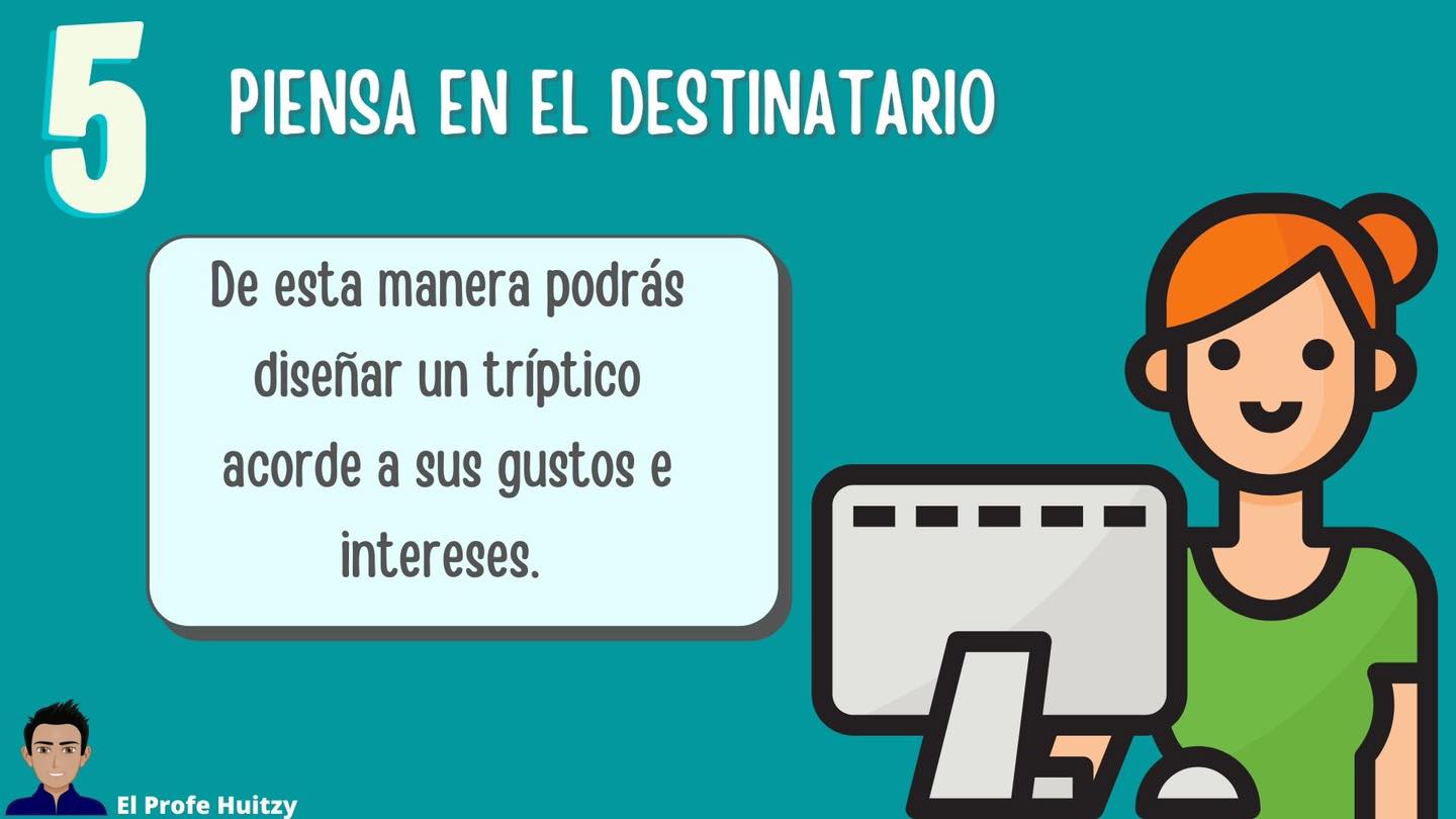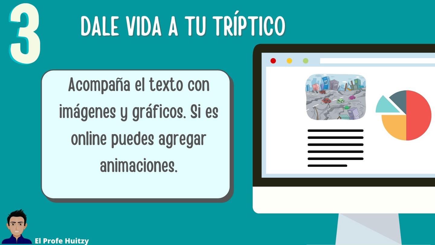 - Sigue el siguiente esquema al momento de colocar la información en el tríptico.