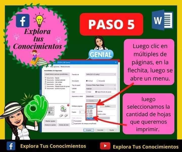 Presionando en Páginas múltiples tenemos que seleccionar en este ejemplo 1 en 2×2 páginas o 1 en 3×3 páginas, tener en cuesta que varia según la impresa que tengamos instalada.