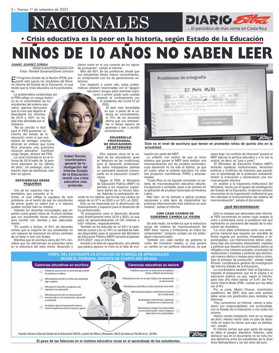 En un sombrío viernes 1 de septiembre de 2023, las páginas del «DIARIO 77», el periódico líder en ventas en Costa Rica, revelan una noticia que sacude los cimientos de la nación centroamericana. Según el Programa Estado de la Nación (PEN), la crisis educativa que asola al país ha alcanzado niveles históricos, con un impacto devastador en la capacidad de los niños de 10 años para leer y escribir. En este artículo, exploraremos en detalle los alarmantes hallazgos de este informe y las implicaciones que esta crisis tiene para el futuro de Costa Rica y su sistema educativo.