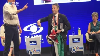 El episodio más reciente ocurrió en el décimo Congreso Empresarial Colombiano, organizado por la Asociación Nacional de Empresarios de Colombia (ANDI), en Cartagena. Quintero, sin haber sido invitado al panel de aspirantes, accedió al recinto con una escarapela a su nombre y subió al escenario en medio de la intervención del exministro Mauricio Cárdenas. Frente a más de 1.400 empresarios, ondeó una bandera palestina y exigió detener las exportaciones de carbón a Israel. Su acción desató abucheos y gritos de “¡fuera!” y “¡ladrón!”, recordándole al público su imputación judicial.