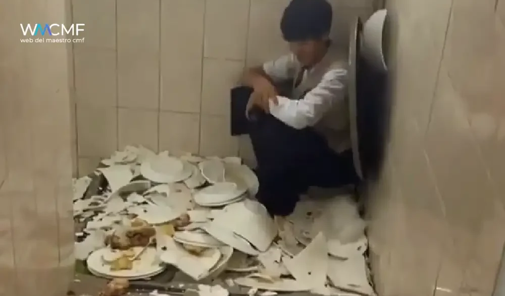 Un joven camina con cuidado, sosteniendo una torre de platos sobre su hombro. Da un paso en falso, pierde el equilibrio y en cuestión de segundos todo se hace pedazos. Los platos caen, se rompen, el ruido llena el aire y él queda inmóvil, mirando el desastre. No dice nada. No hace falta. Basta con ver su rostro para entender lo que siente: vergüenza, impotencia, miedo.
