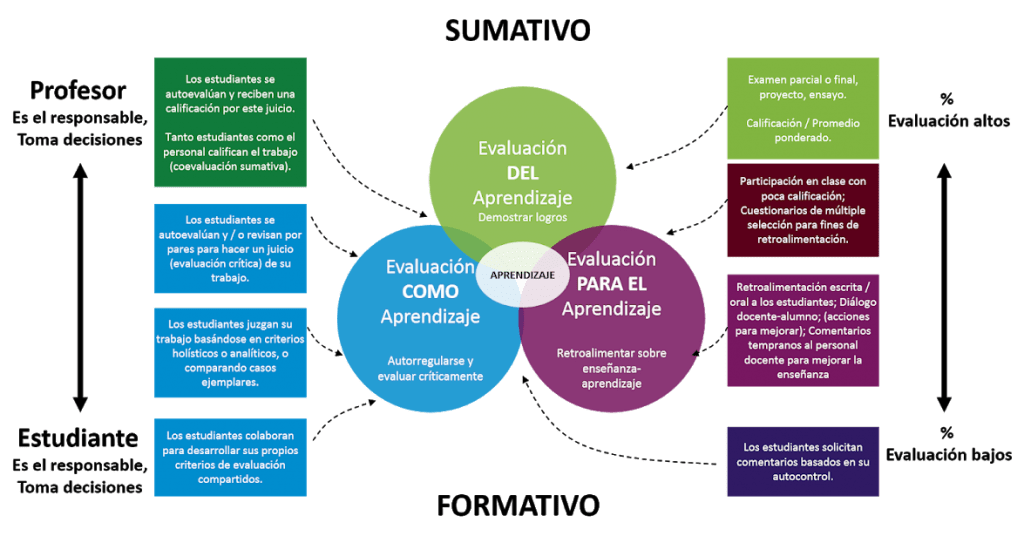 Entonces, ¿qué es la evaluación para el aprendizaje? Es la que se realiza durante el proceso de aprendizaje y no al final de este, es decir, es el momento en que se pueden tomar decisiones educativas para ajustar la enseñanza de acuerdo con las necesidades de los alumnos y retroalimentarlos durante su proceso de aprendizaje.