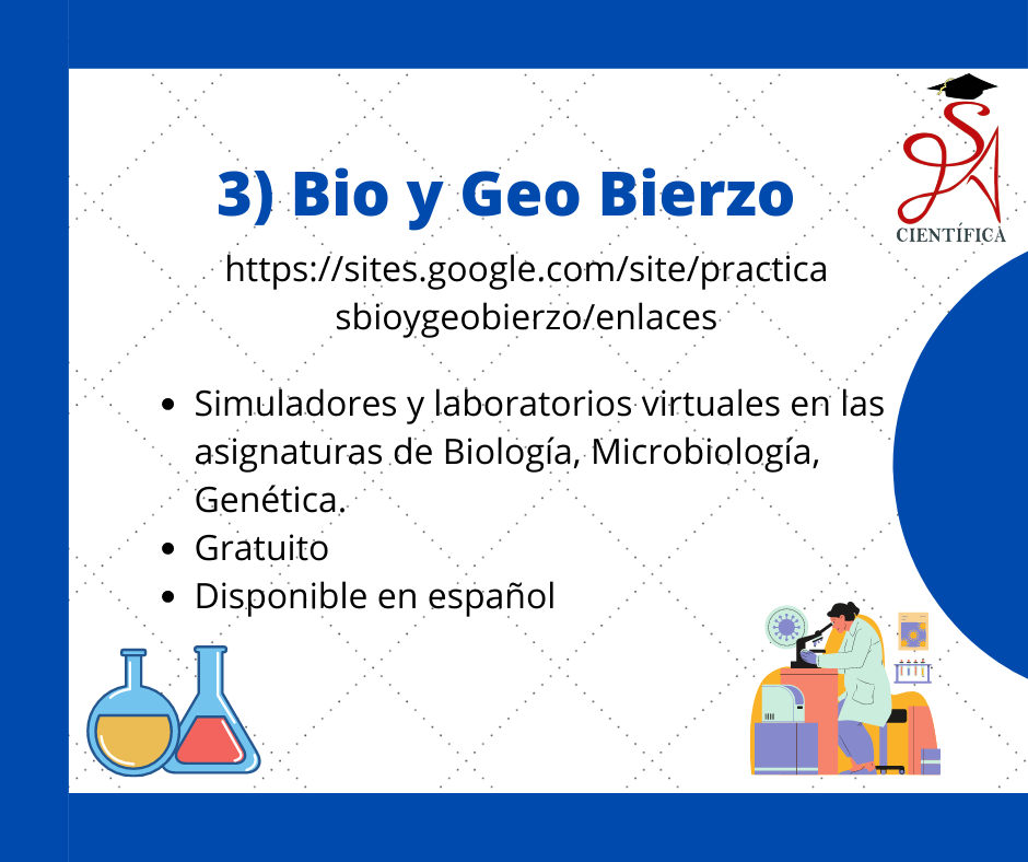 - THE VIRTUAL LAB SERIES: En inglés. Se pueden realizar varias prácticas y actividades en el campo de la Biotecnología, como son identificación de bacterias, inmunología, cardiología, neurofisiología, etc.