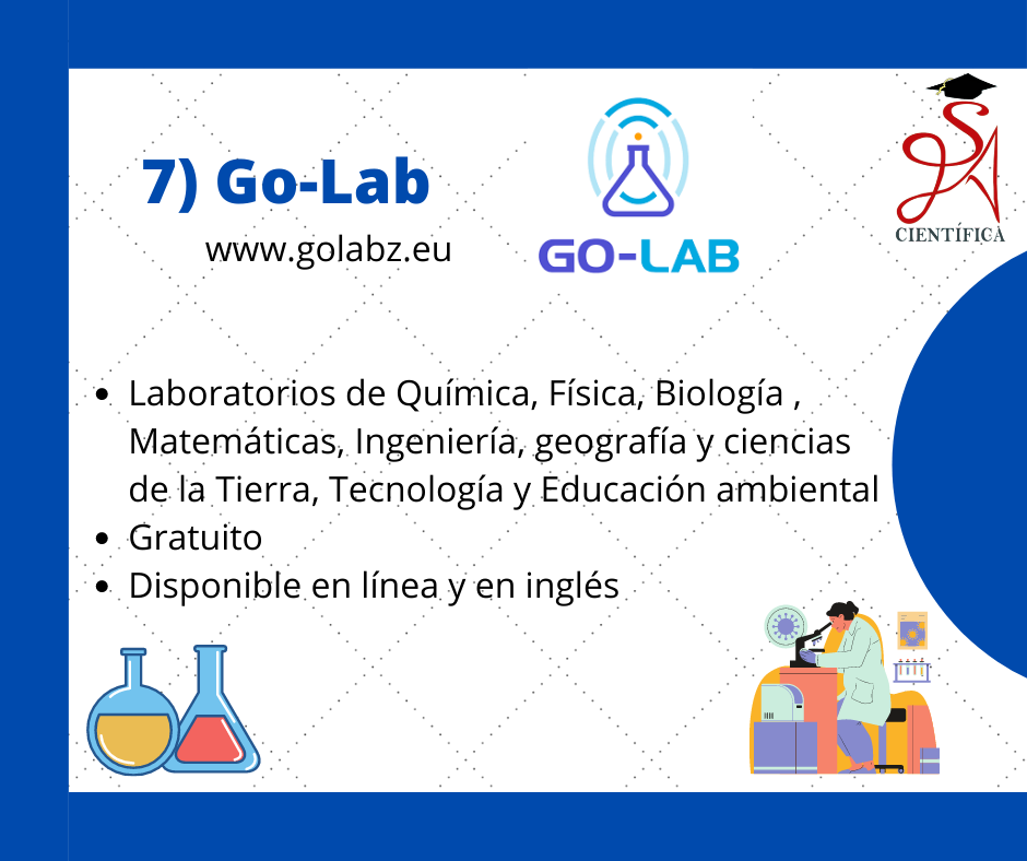 - Golab: Es una estupenda plataforma que tiene laboratorios virtuales, traducidos al castellano, euskera y catalán, también. Una vez que accedes a la página de inicio, puedes cambiar el lenguaje para elegir los laboratorios en castellano, por ejemplo.