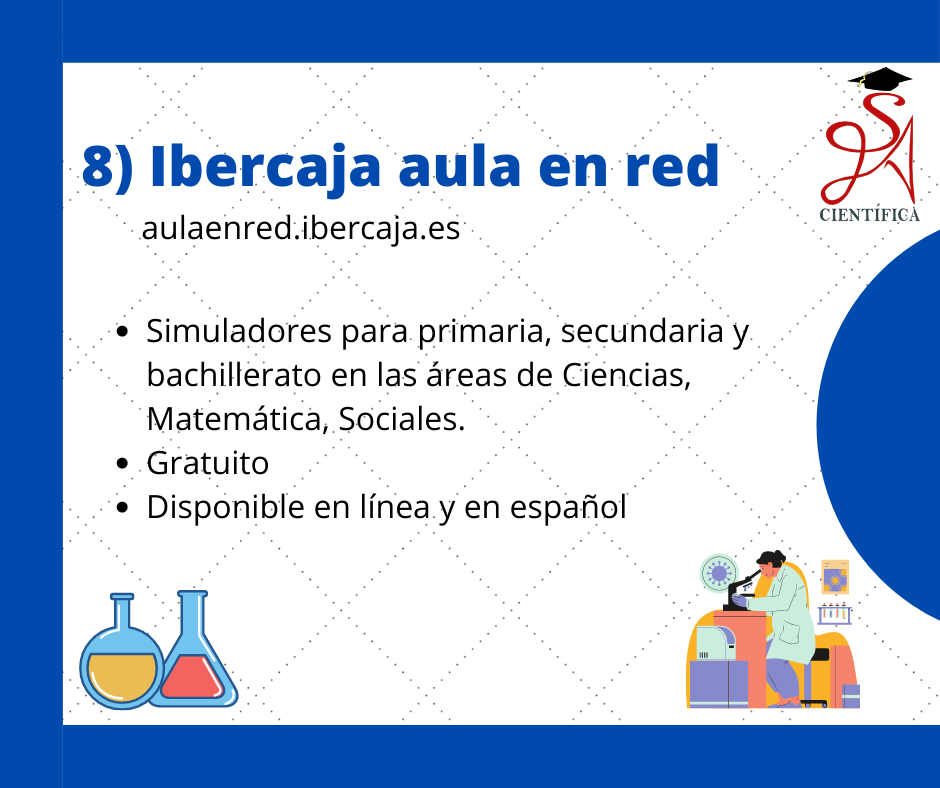 - AULA EN RED: Web promovida por la obra social de la entidad financiera Iber Caja, posee una serie de simulaciones y experimentos virtuales, principalmente de Física, Química y Biología. En las actividades de Química, se encuentran indicadores ácido-base y fórmulas de hidratos. Se centra principalmente en la enseñanza preuniversitaria.